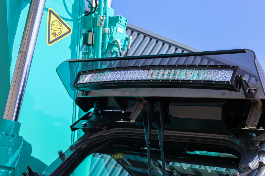 La pelle sur chenilles destinée à Lavens a été équipée par les professionnels de De Bruycker-Kemp avec plusieurs options, telles qu’une marche d’accès à la cabine, une boîte à outils fixée au châssis, un crochet de levage à trois trous, une lame bulldozer et un contrepoids supplémentaire.