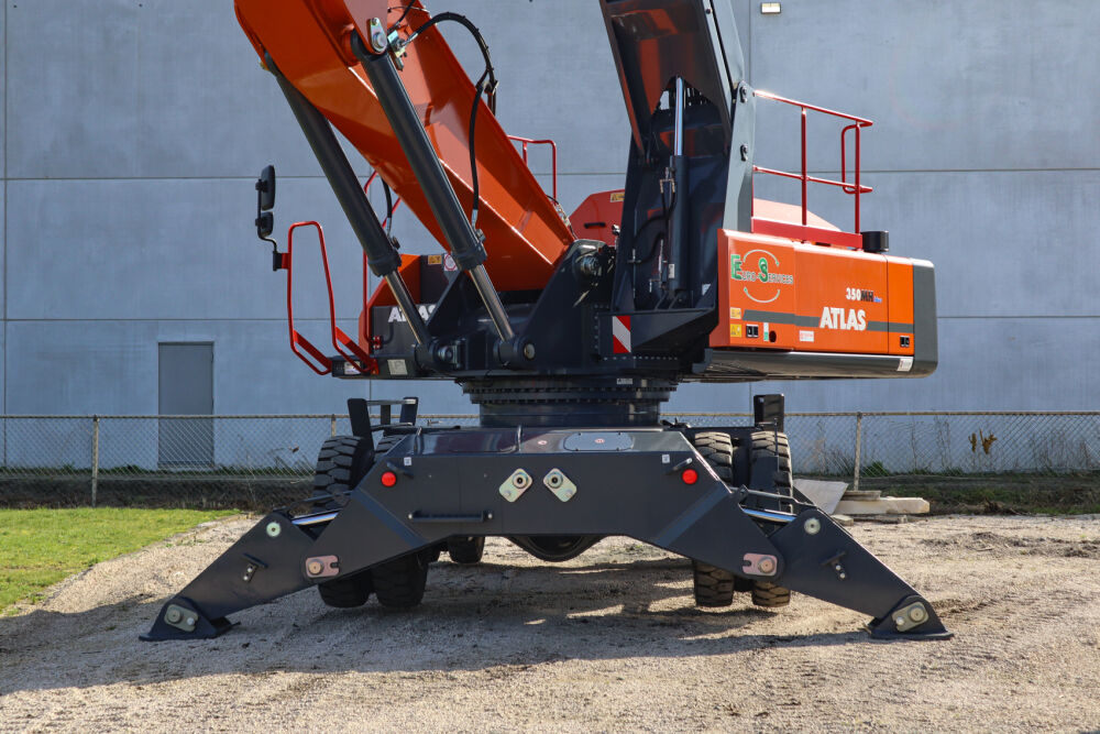 De Atlas 350MH is naar de wensen van Euro-Services opgebouwd met een tweede camera op de giek, verzwaard contragewicht, langere steunpoten, extra werkverlichting en beltettering van Euro-Services. Binnenkort wordt er ook een nieuwe grijper geleverd.