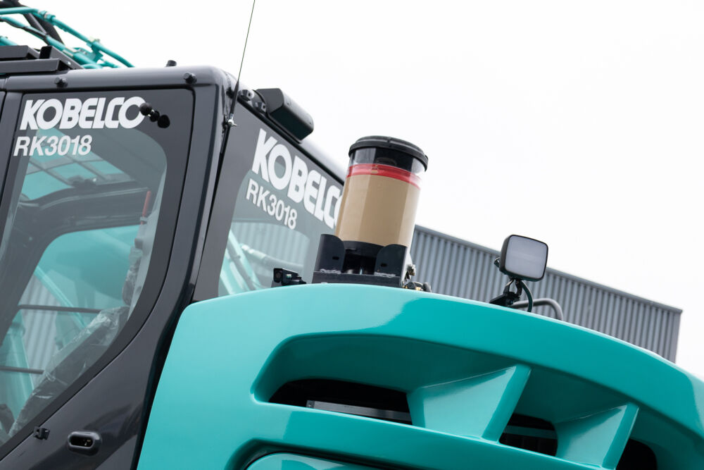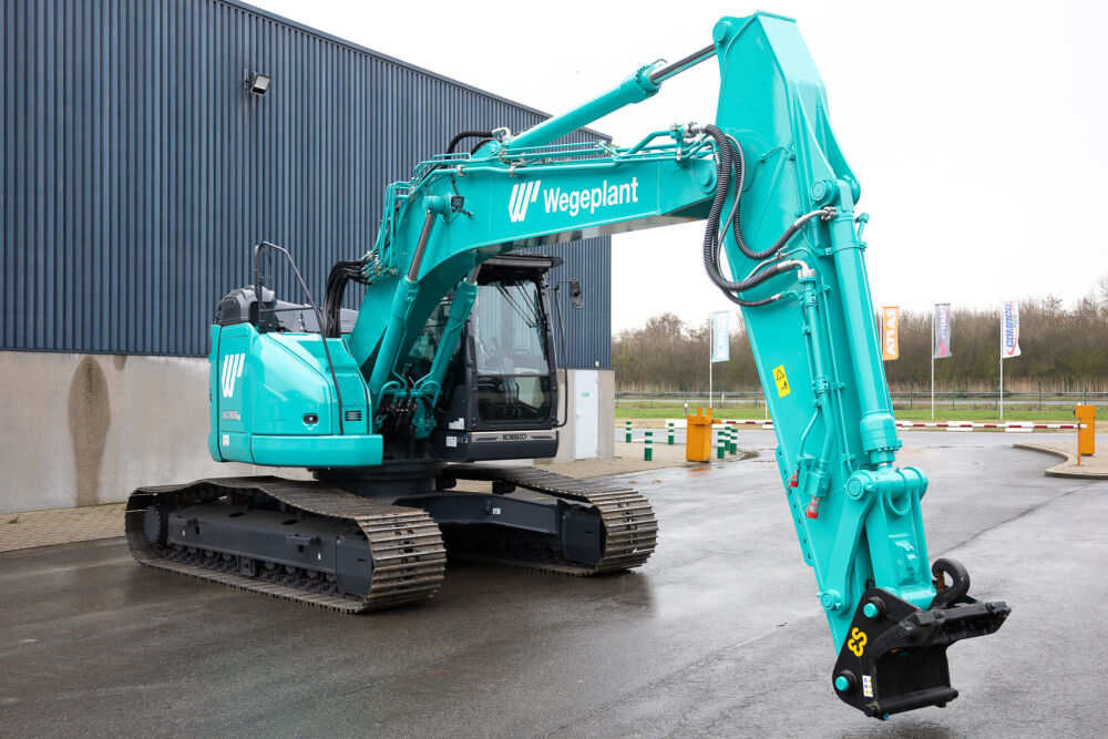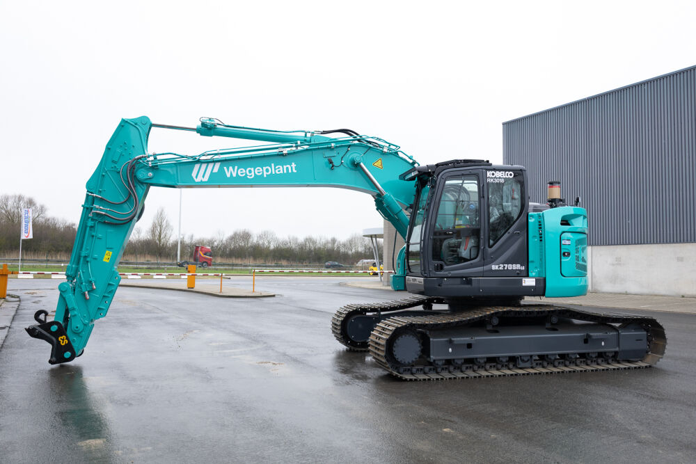 De professionals van De Bruycker-Kemp hebben de Kobelco SK270SRLC-7 voor Wegeplant o.a. voorzien van een dubbele heflat, LED-balk vooraan cabine, firmanaam rondom en automatische smering met een 6kg reservoir van het merk Lubecore.